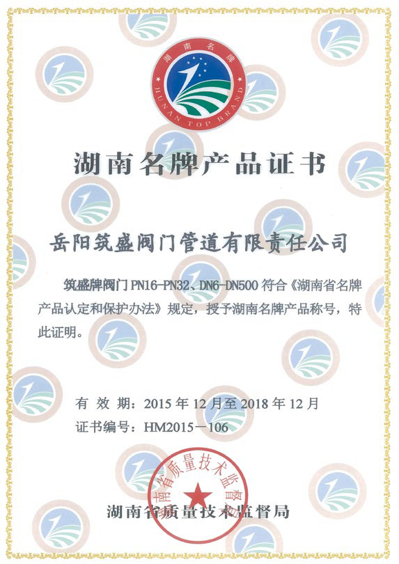 湖南省名牌產品證書
