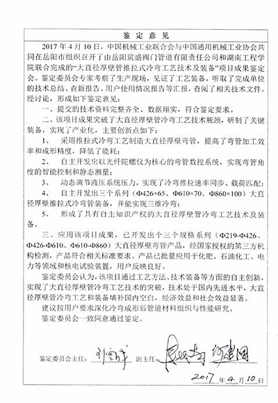 推拉式冷彎工藝及裝備 2017 年 5 月通過了中國