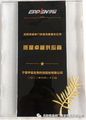 岳陽筑盛閥門管道有限責任公司作為優秀供應商代表受到寧夏伊品生物科技有限公司的高度贊揚,并榮獲了質量卓越供應商稱號。寧夏伊品現有總資產近20億元,擁有員工3500多人,是寧夏自治區人民政府確定的工業龍頭企業;